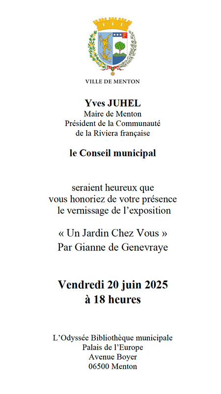 What next? A solo show at the municipal library in Menton June 20- July 19, with the show open during regular library hours. This venue is in keeping with my vision of exhibiting in public spaces. Here is the artist statement for the show entitled, At Home in the Garden: "My paintings of native plants inculcate a desire to re-create and appreciate the splendor of a natural environment. The public gardens and landscapes of the world are my canvas to bring a message of sustainability, accessibility, and beauty." If you are in the Menton area, please come to the cocktail opening next Friday, invitation below.