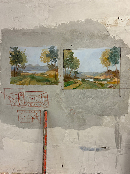 Below: Studies on perspective for fresco. The fresco artist at work!