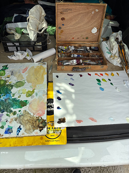 My solo show at the Musée du Cap d'Ail, Villa les Camélias was such a wonderful event for me! I taught a pastel workshop, so successful they want me back to teach again next year. Opening night was well attended and the weather was perfect. During a poetry evening, Sabine Peglion recited some very deep poems about my work; her work was featured in the show. The closing event consisted of book signings with authors from around France and two guided tours of the exhibition with commentary from Sabine and me. Overall, it was an immensely validating experience, and the work sold well.