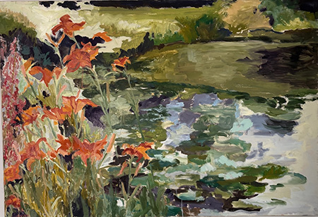 Daylilies and Pond at Bagatelle, 2019 - Sold 89x130cm, Oil on Linen