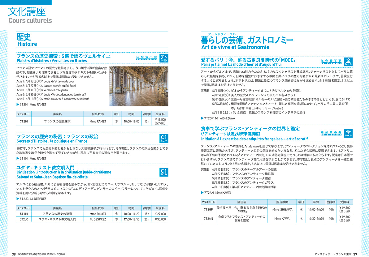 ※詳細はこちら http://www.institutfrancais.jp/tokyo/files/2014/02/brochure2017h.pdf